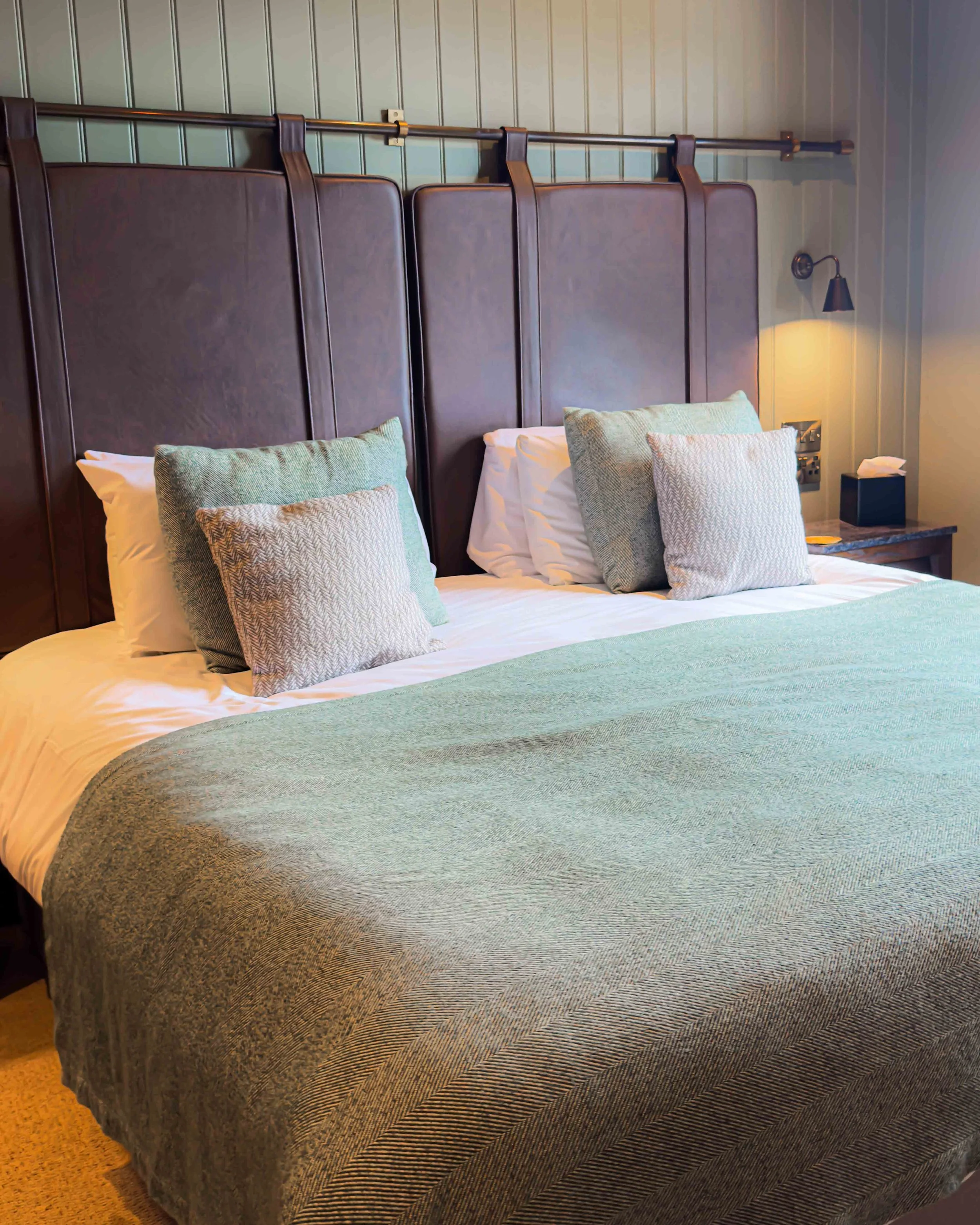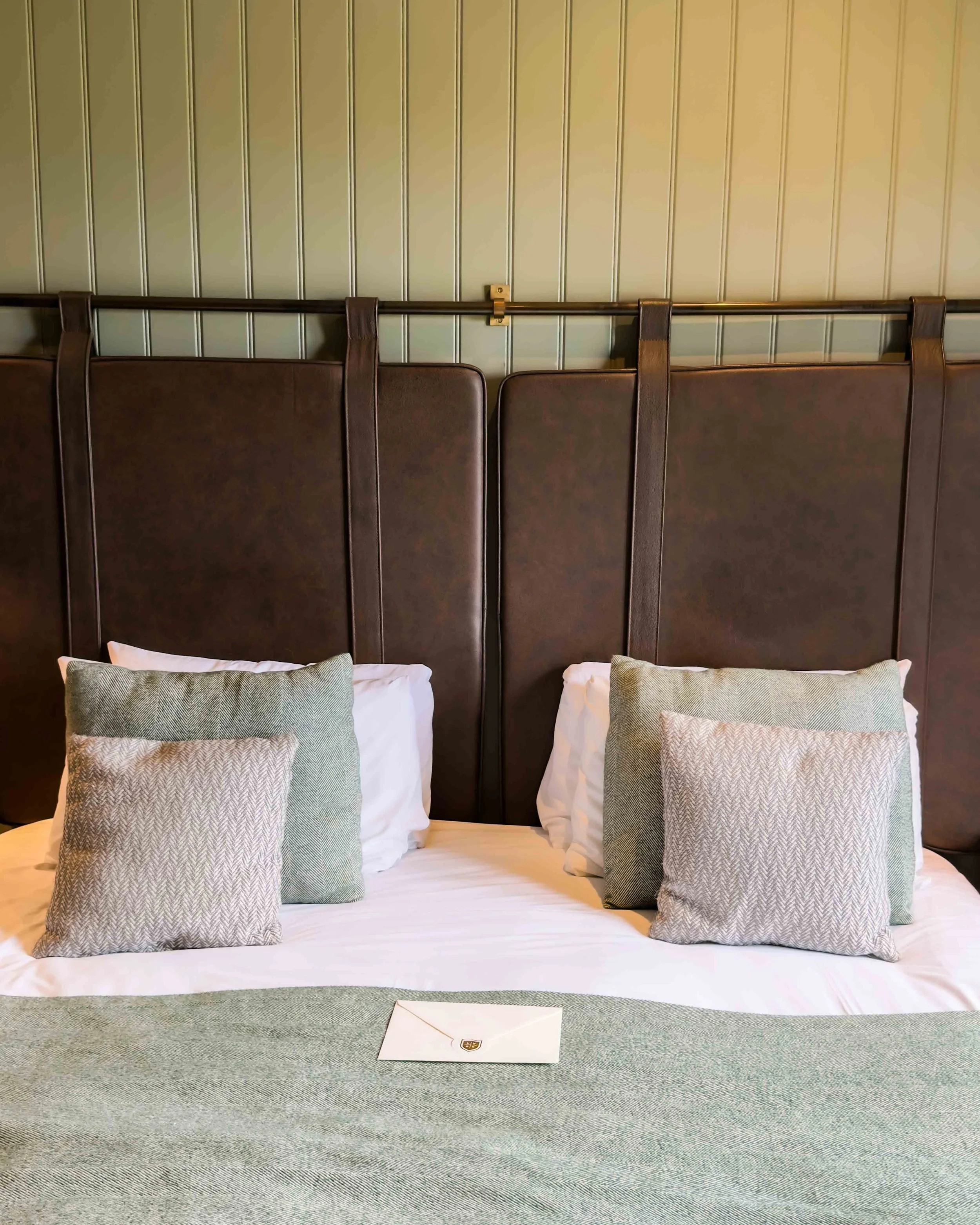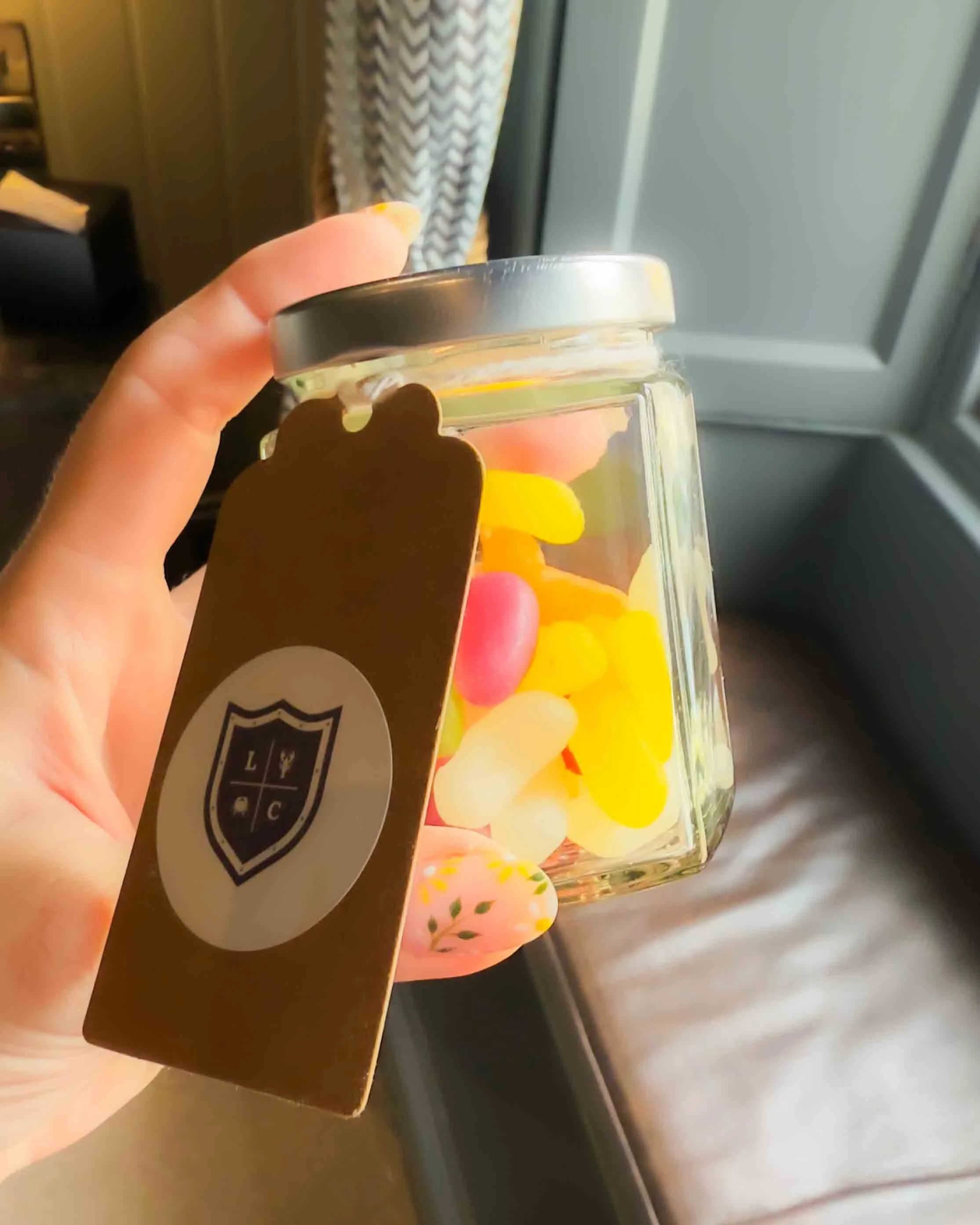 The room was beautifully styled in soft greens and cosy textures, with every detail thoughtfully considered. Thoughtful touches like little jars of jelly beans and pretzels added an extra sense of warmth and welcome.
