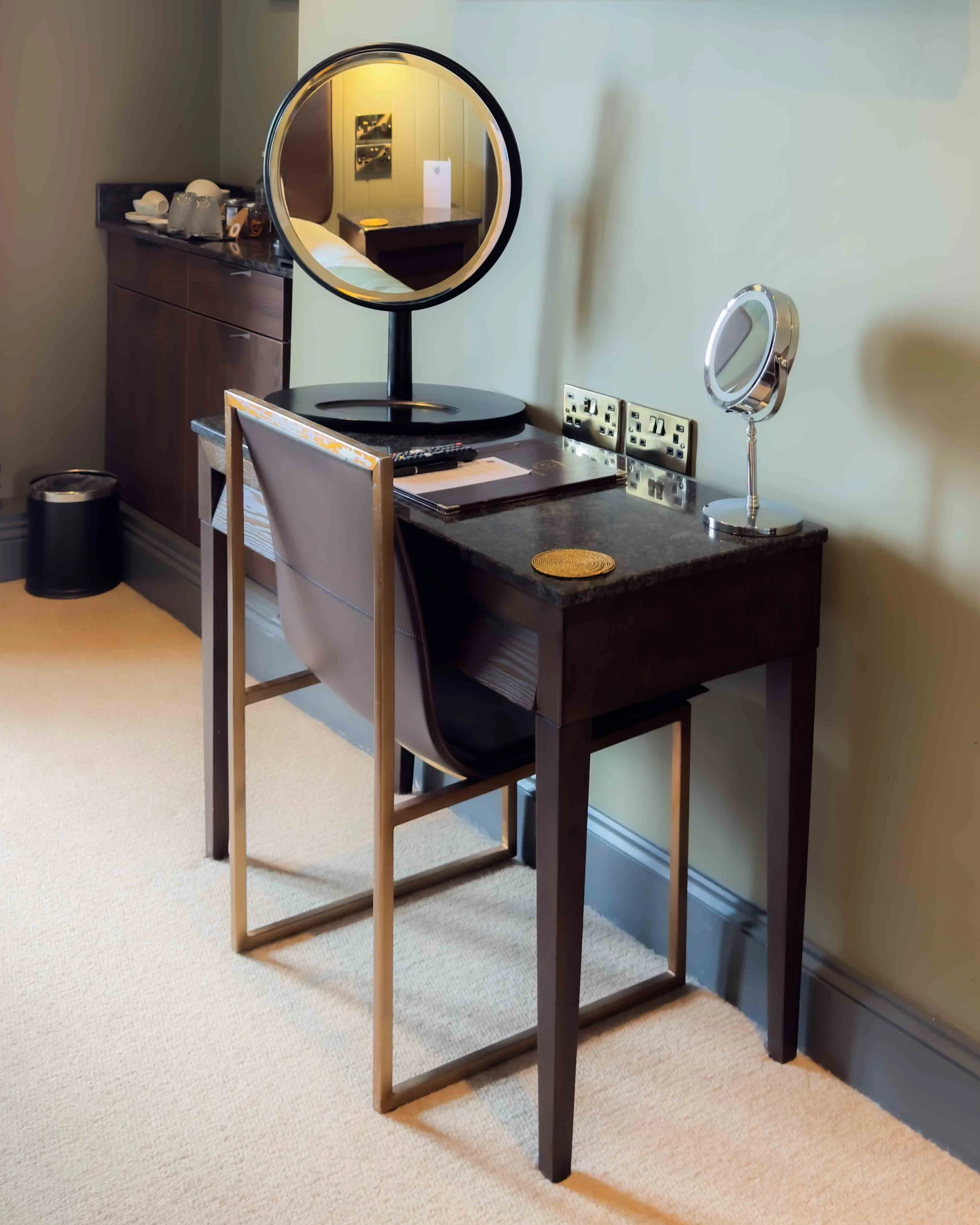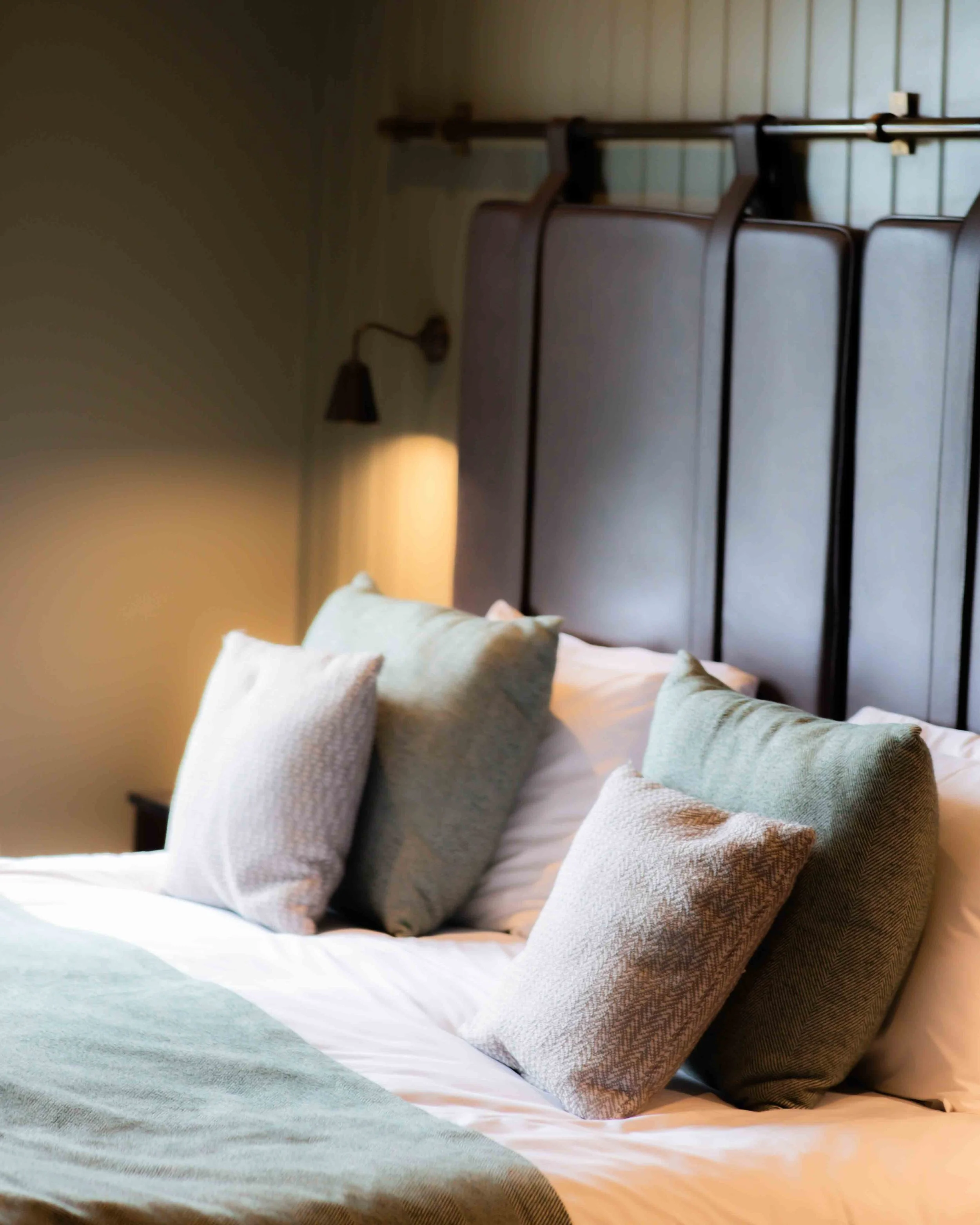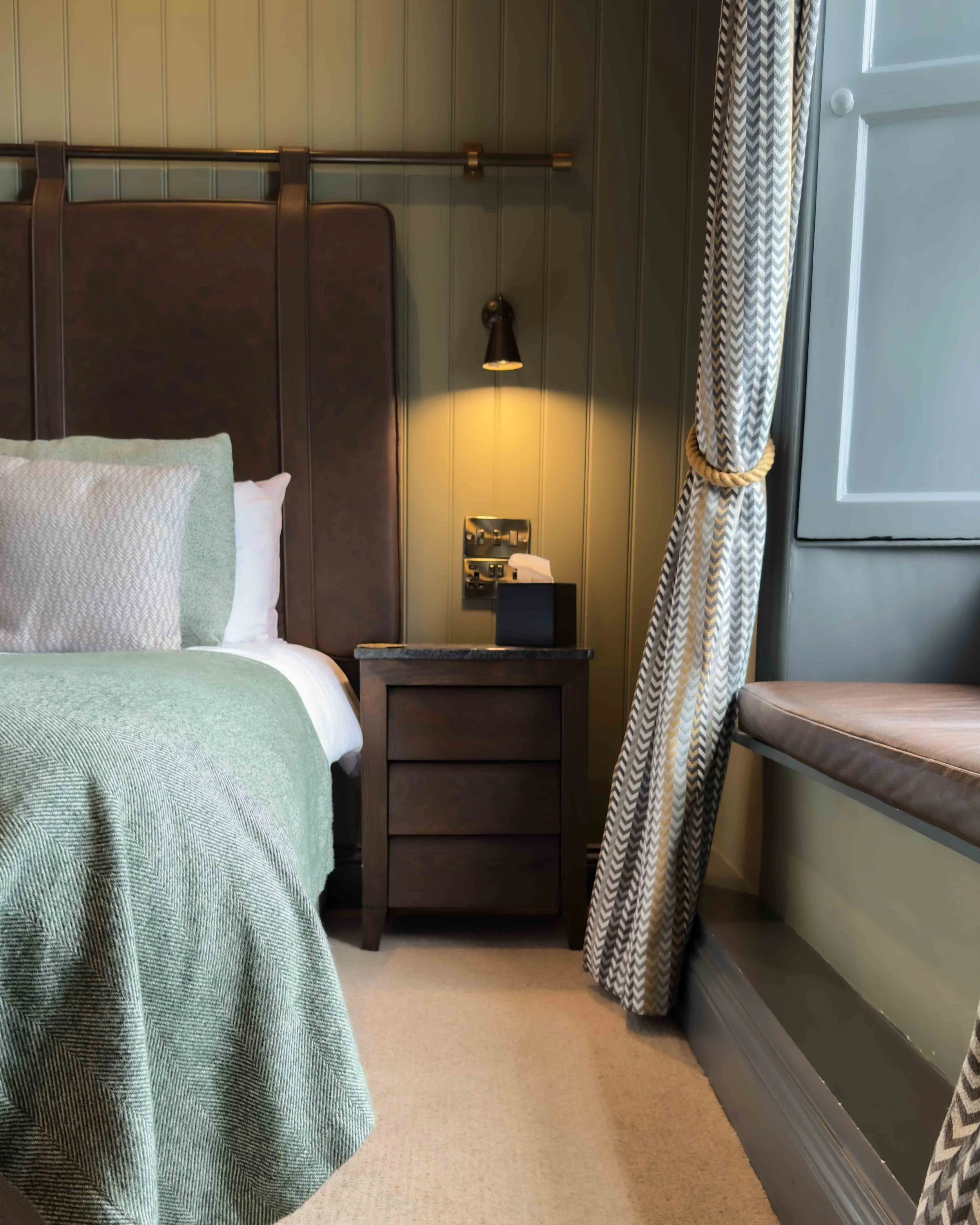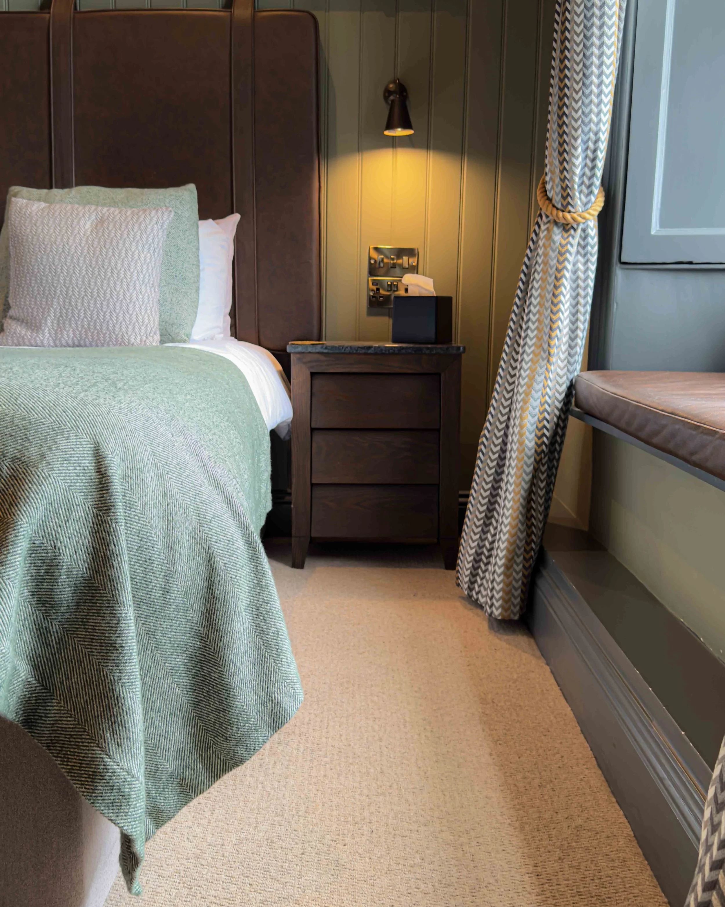 The room was beautifully styled in soft greens and cosy textures, with every detail thoughtfully considered. Thoughtful touches like little jars of jelly beans and pretzels added an extra sense of warmth and welcome.
