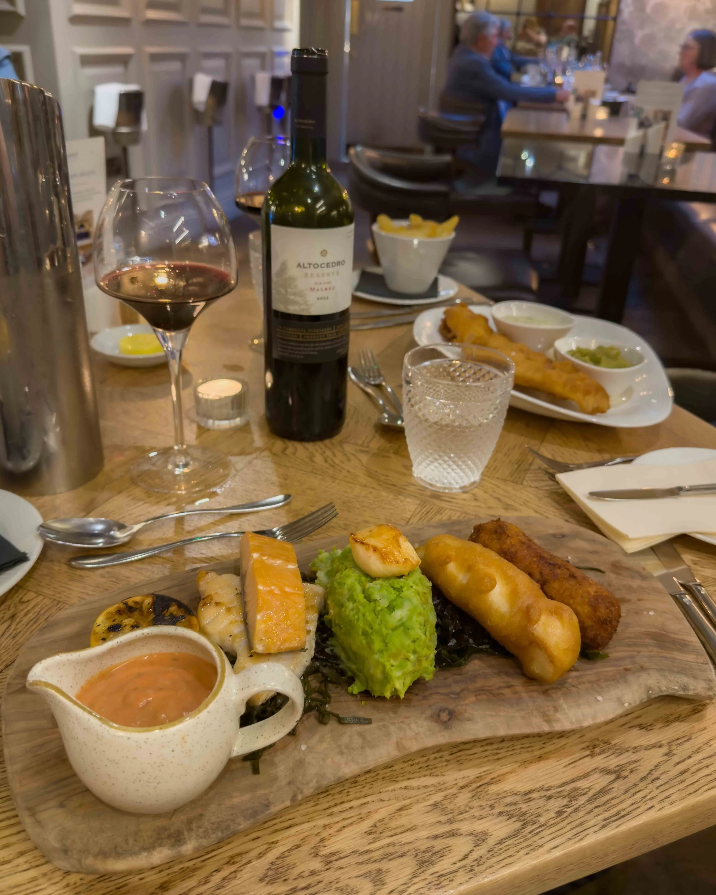 After a day by the sea, dinner was exactly what was needed, posh fish fingers and chips, perfectly cooked and full of flavour. As evening fell, I took my drink out to the beer garden, where the sunset cast a golden glow over the castle, a sight that’s hard to beat.